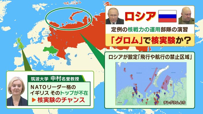 「NATOと言ったらアメリカとイギリスの2つの軍が非常に中軸なんですね。イギリスのすぐ東側で軍事演習が行われ、イギリスのリーダーが辞任を発表して、イギリスが混乱している。このタイミングでロシアが核実験をするんじゃないかと言われてるんですね」