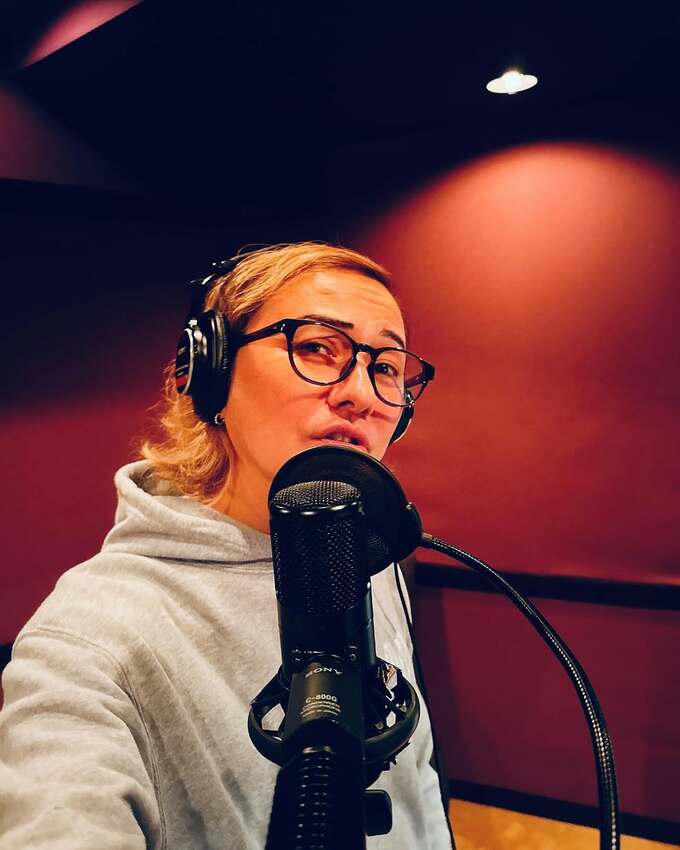 投稿された写真には、メガネをかけヘッドフォンを装着しマイクに向かって歌う姿が写っています。