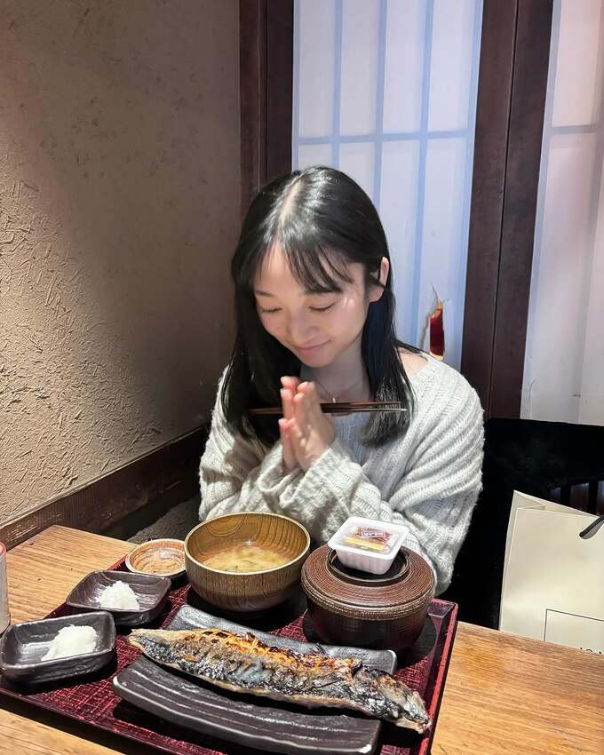 最後に「久しぶりの焼き魚定食こころに沁みました。」と記し、焼き魚定食を食べる自身の写真もアップしています。