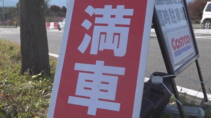「午前11時です。駐車場は満車の看板が掛けられていますが、周辺の道路では渋滞は見られません」