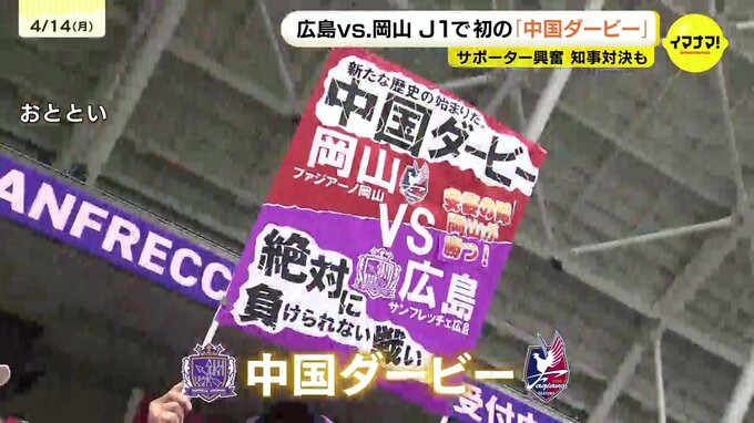 広島と、今シーズンからJ1で戦う岡山が対決した「中国ダービー」。J1の舞台で、広島が隣の県のチームと対戦したのは初めて…。多くのサポーターが駆けつけました。