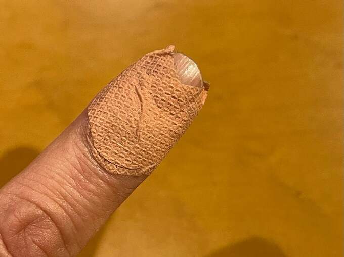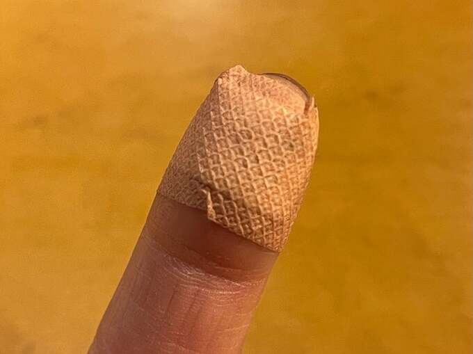 「左手でまだ良かった。血止めして、消毒して、応急処置。どうなることやら、ついうっかり、あわてんぼうは損しますね。短気は損気。くれぐれも気をつけま〜す」と、メンテナンスで左指を負傷したことを報告していました。