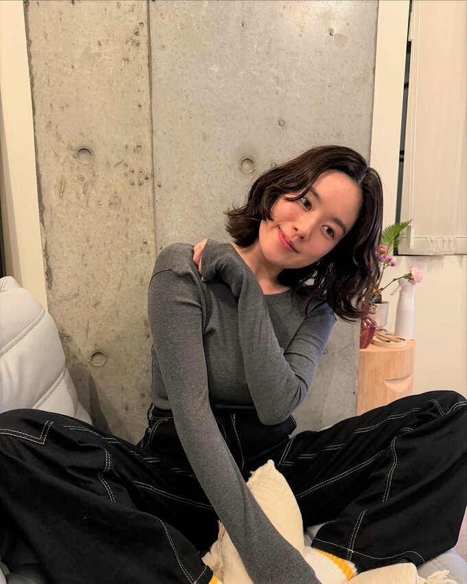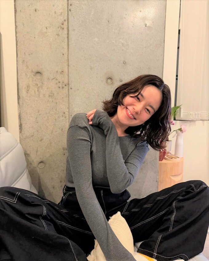 投稿された画像では、筧美和子さんが、グレーの長袖トップスと黒いパンツという落ち着いた装いで椅子に腰かけた筧さんの姿が。