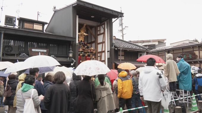 2日目を迎えた春の高山祭は朝から雨に 祭屋台の曳き揃えは中止となり蔵の中で「からくり奉納」を披露 岐阜