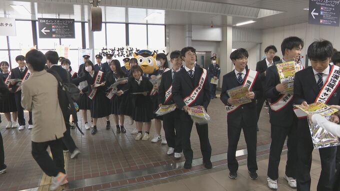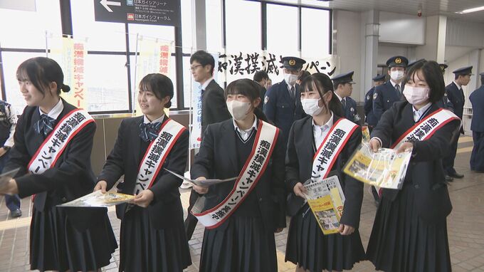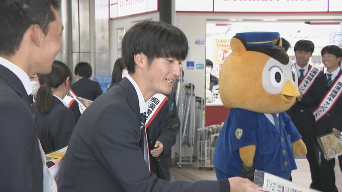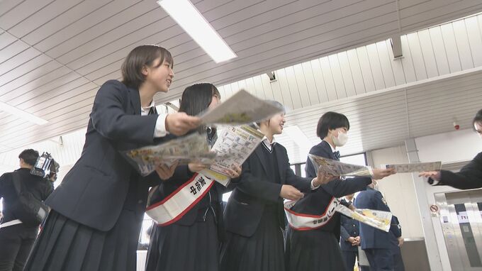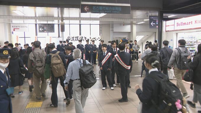 通勤・通学時の痴漢被害をなくそうと駅でキャンペーン 高校生がチラシを配って警察官と一緒に注意呼びかけ 名古屋