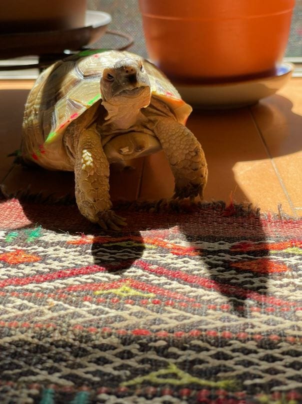 秋吉さんは、4月12日に「失われたチケット」と題し、「失われた、と言っていいのか、悪いのか、まだわからないのだけど、春になって元気に動き回り、コーンをモリモリ食べていた最近のチケットが、旅に出てしまったのかもしれない。」と、自身の「愛亀」について投稿。
