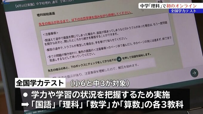 全国学力テストは学力や学習の状況を把握するため文部科学省が実施していて、2025年は「国語」と「理科」、小学校の「算数」中学校の「数学」の各3教科で行われます。