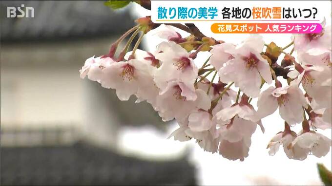 新潟県内の各地の桜は、今後徐々に散り始めますが、花びらが空をピンクに染める桜吹雪も美しいですよね。そこで、ウェザーニューズがホームページへのアクセス数などを基に順位をつけた、新潟県内の『お花見スポッ…