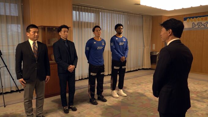 岡山県庁を訪れたのは大森GM兼ヘッドコーチや高畠主将ら4人です。伊原木知事に今シーズンの結果を報告し、来シーズンに向けた決意を述べました。