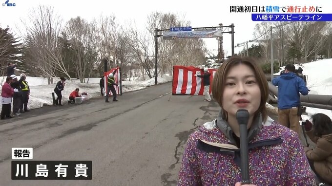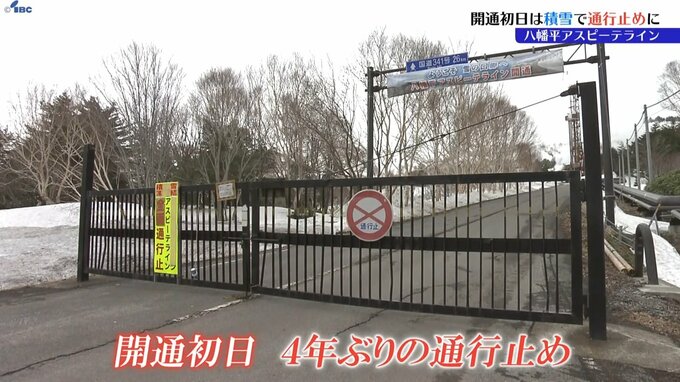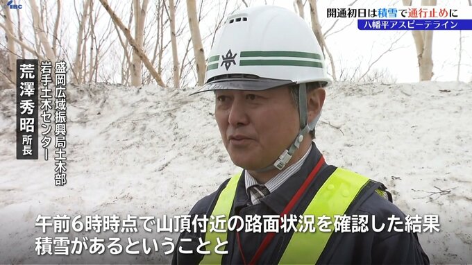 冬の間通行止めが続いていた八幡平アスピーテラインは、15日開通の日を迎えましたが、山頂付近で積雪が確認されたため終日通行止めとなりました。