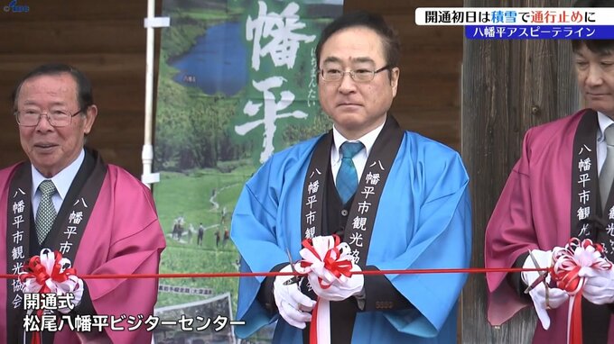 15日は麓の松尾八幡平ビジターセンターで開通式が行われ、八幡平市の佐々木孝弘市長ら関係者が開通を祝いました。
