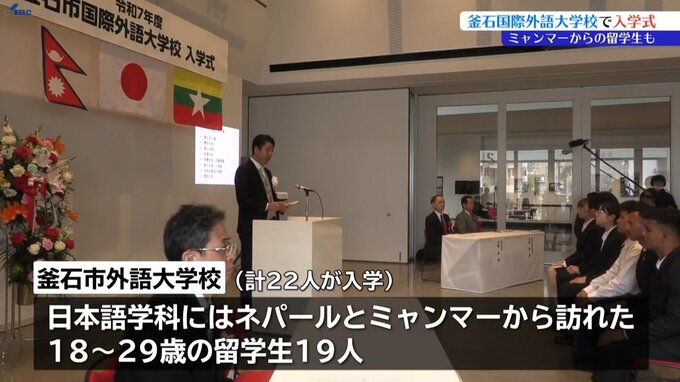 2024年開校した釜石市国際外語大学校で15日入学式が行われ、大地震が発生したミャンマーからの留学生を含む22人が入学しました。