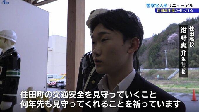「まずは住田町の交通安全を見守っていくことを、何年先も見守ってくださることを祈っています。そして見かけた人が笑顔になってくれるような人形でいてほしいなと思います」