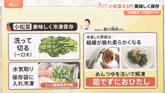 「思わず値札を二度見した」。そんな声が聞かれるほど、いま野菜が安くなっています。「まとめ買い」をした後、冷凍保存をすると実は後々かなりの時短に繋がるそうなんです。