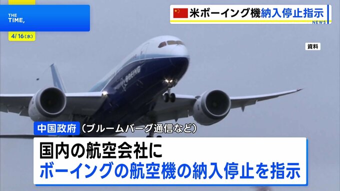 中国政府がアメリカの対中関税への報復として、国内の航空会社にアメリカのボーイングから航空機の納入を受け入れないよう指示したと、アメリカメディアが報じました。ブルームバーグ通信などが関係者の話として報…