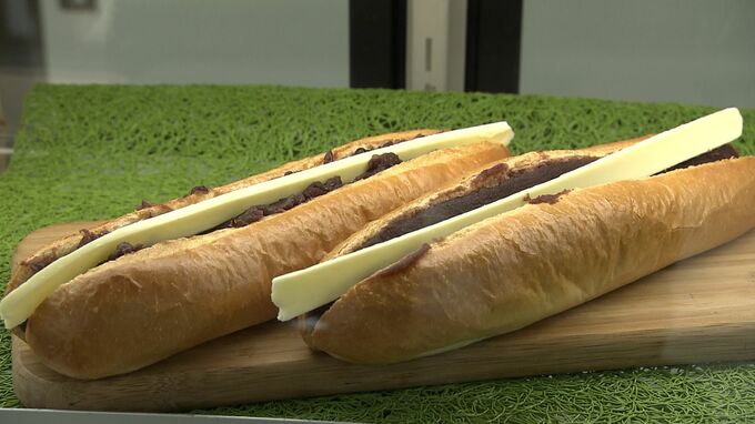 約30センチのソフトフランスに溢れんばかりのあんを挟んだ「あんバターフランス」は、東京・銀座の老舗和菓子店が作る各日限定200本の人気商品です。