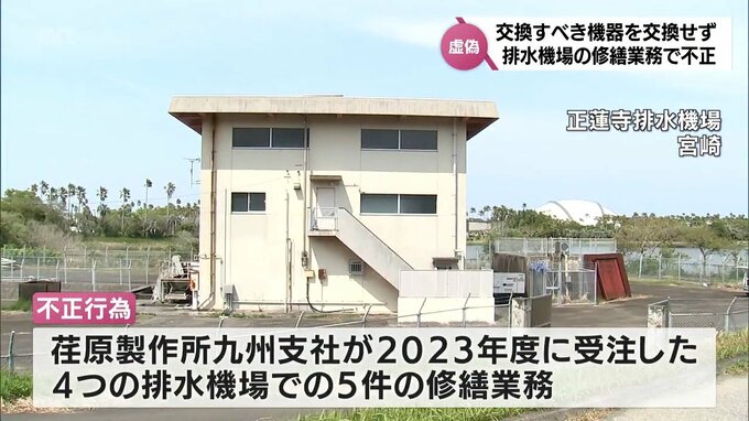 宮崎市は排水機場の修繕業務で、業者が新品に交換すべき機器を交換せずに業務を完了させたと偽る不正行為があったと発表しました。宮崎市によりますと、不正行為があったのは、荏原製作所九州支社が2023年度に受注…