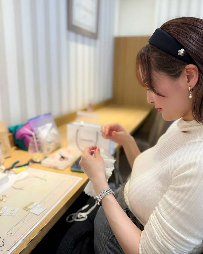 フリーキャスターの新井恵理那さんが自身のインスタグラムを更新し、アクセサリー作りの模様を投稿しました。
