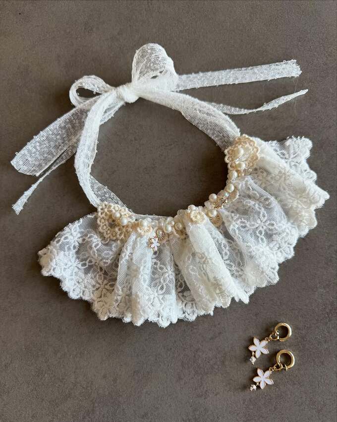 新井さんは「ちくちくちくちく」「レースとビーズは永遠に可愛い!!」と裁縫でアクセサリー作りに取り組んでいる模様を写真で投稿。