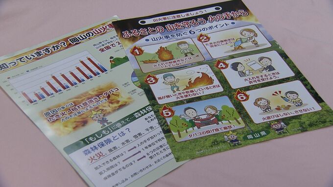 山火事を防ぐポイントを記した岡山県の啓発チラシです。県は、山火事予防運動月間を3月いっぱいから5月6日まで延長していて、チラシについても増刷しています。