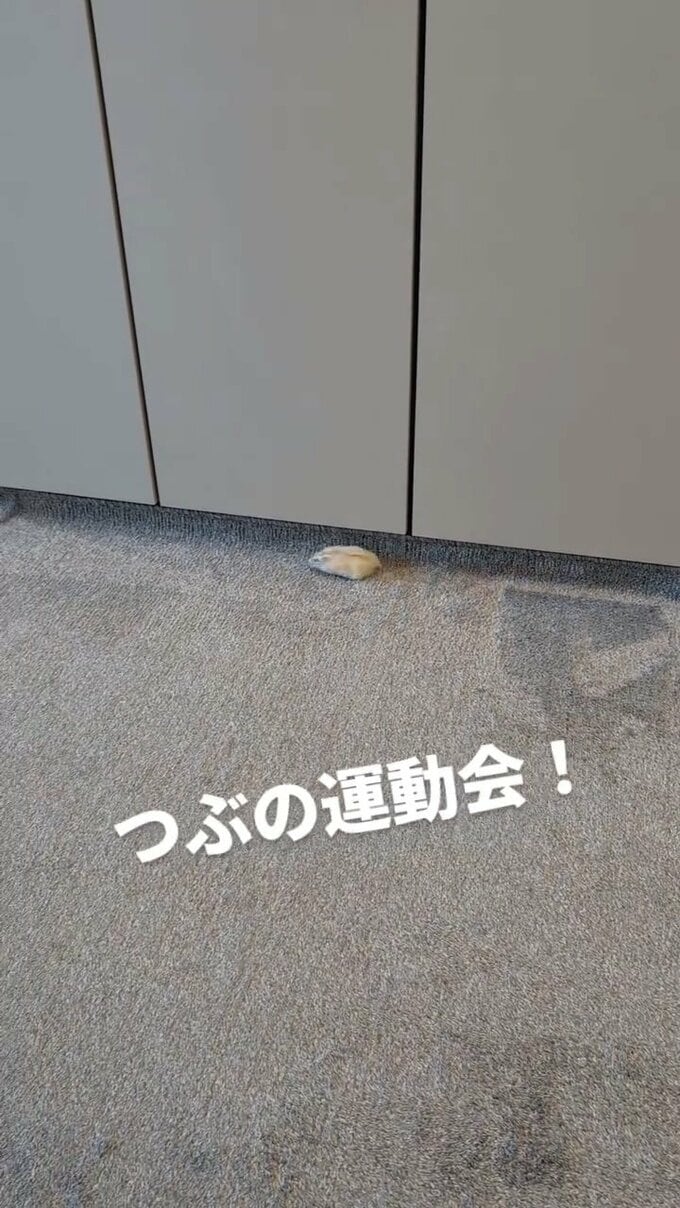 照英さんは「夜行性で夜も爆走」と紹介。動画では「つぶの運動会!」と大きくテロップを入れていて、「つぶ」は軽くうずくまったような格好でスタートに備え、そろりと出発して3歩ほど慎重に進んだかと思うと猛ダッシュ。姿がぶれるほどのスピードでカーペットの上を疾駆しています。