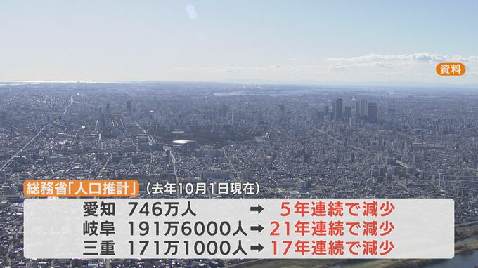 総務省がおととい発表した(※去年10月1日現在の)人口推計によりますと、愛知県の人口は746万人で前の年より1万7000人少なく、5年連続で減少。