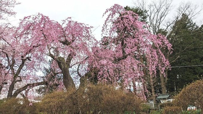 水沢公園には県の天然記念物に指定されている彼岸系桜樹群の古木や、シダレザクラ、ソメイヨシノなどおよそ400本のサクラの木が植えられています。
