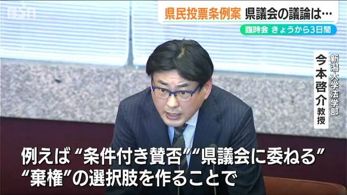 【新潟大学 法学部 今本啓介 教授】「〇×方式は分かりやすいものではありますが、例えば"条件付き賛否”、"県議会に委ねる”、"棄権”の選択肢を作ることで結果は大きく変わる可能性がある」