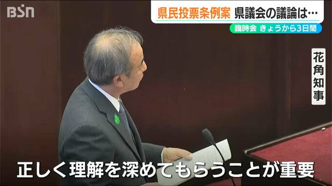 【花角知事】「新潟県民条例制定の直接請求が提出されたので、規定により意見を付けて討議する」