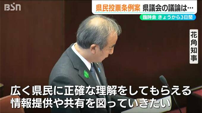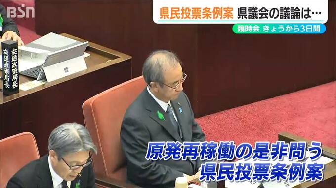 花角知事が議会に提案したのは、原発再稼働の是非を問う県民投票の条例案です。