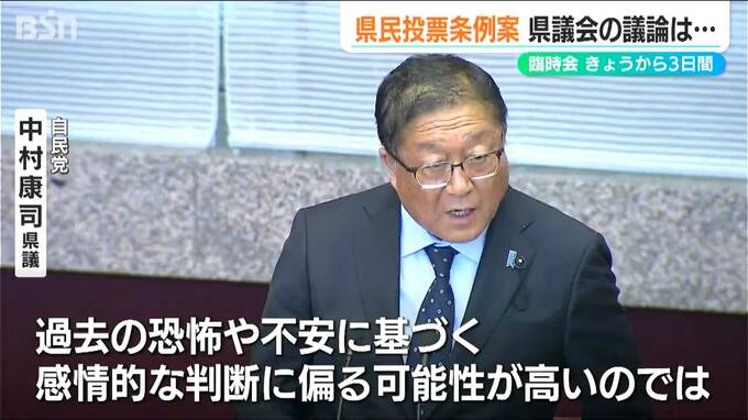 中村 県議はSNSでの情報など、県民が正しく判断できるか疑問だとして条例制定には「慎重なy対応が必要」としました。