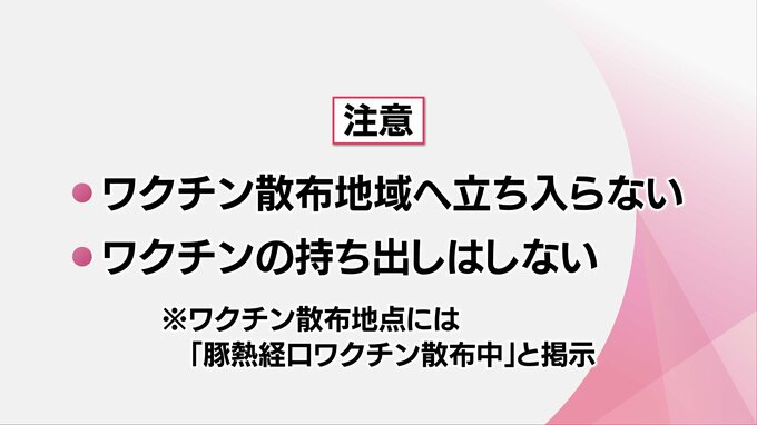 県は、経口ワクチンの散布地域に立ち入らないこと、そして、ワクチンを持ち出さないよう呼びかけています。