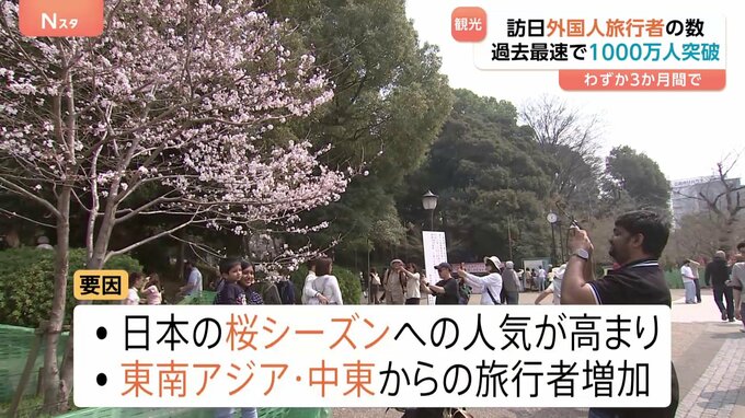 今年に入ってから日本を訪れた外国人旅行者が過去最速で1000万人を突破したことがわかりました。政府観光局によりますと、先月、日本を訪れた外国人旅行者数はおよそ349万人と、去年の同じ月と比べておよそ13.5%増…