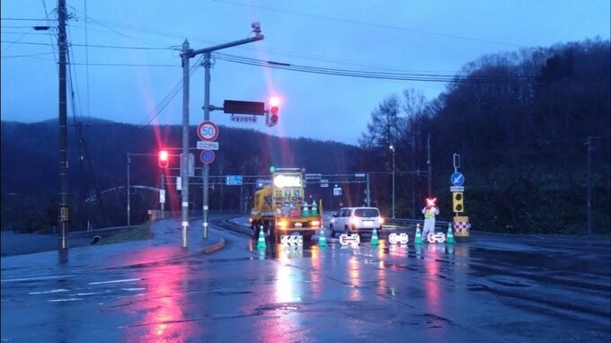 16日午後2時すぎ、開発局のパトロールカーが、国道12号線で石にぶつかって路肩に停車している車を発見しました。