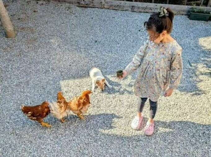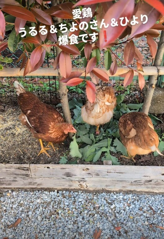 3月12日は、「新しい家族の名前が決まりました。うるる ひより ちよの に決定です」と報告し、新しく家族に加わったニワトリ3羽の写真を投稿。