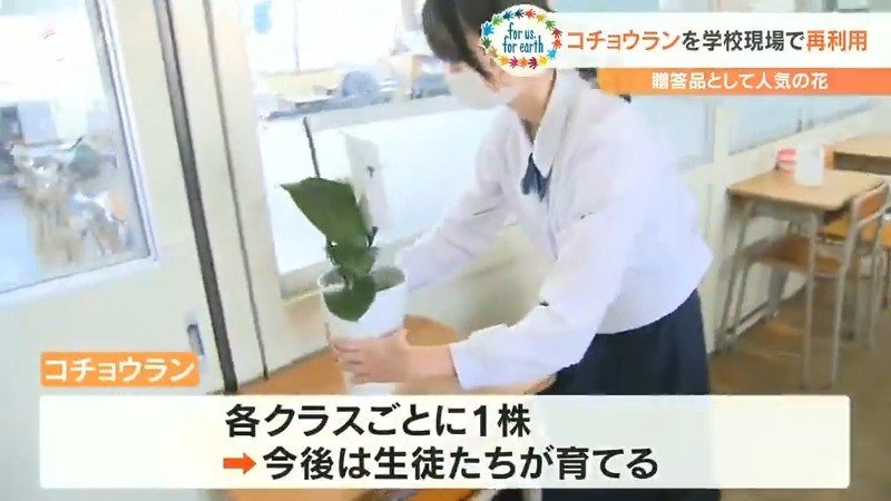お祝いやお悔みなど贈答用として人気の高いコチョウラン。花が咲き終わった後に再利用する取り組みが学校現場で始まっています。