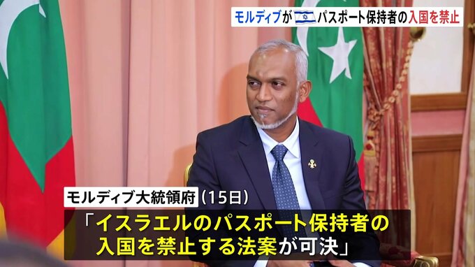 リゾート地として人気のインド洋の島国モルディブが、イスラエルのパスポートを持つ人の入国を禁止しました。モルディブ大統領府は、イスラエルのパスポートを持つ人の入国を禁止する法案が15日に議会で可決され、…