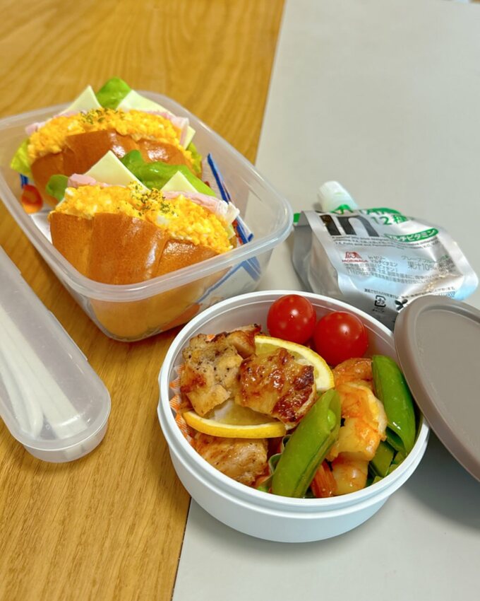 小倉さんは、いつもどおりにお弁当作りを披露。容器の縁よりも高く盛り上がった卵サンドについて「量を減らして、蓋をしました」と、 “お弁当あるある” を綴っています。