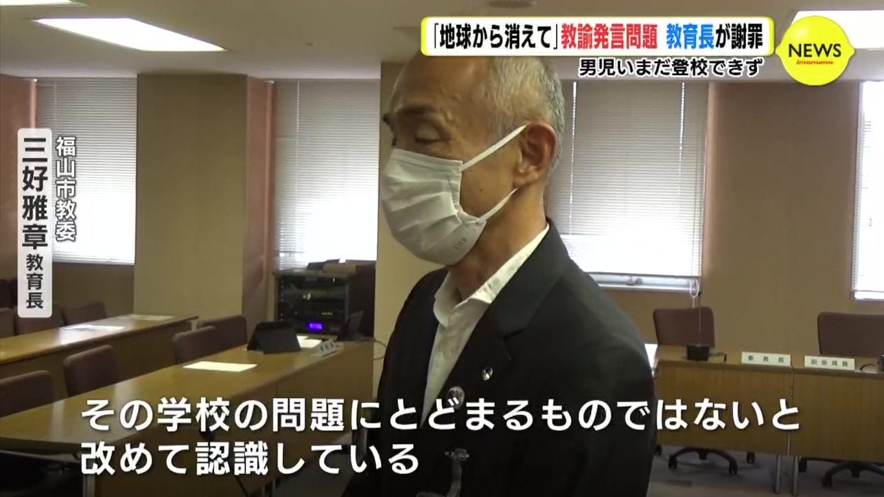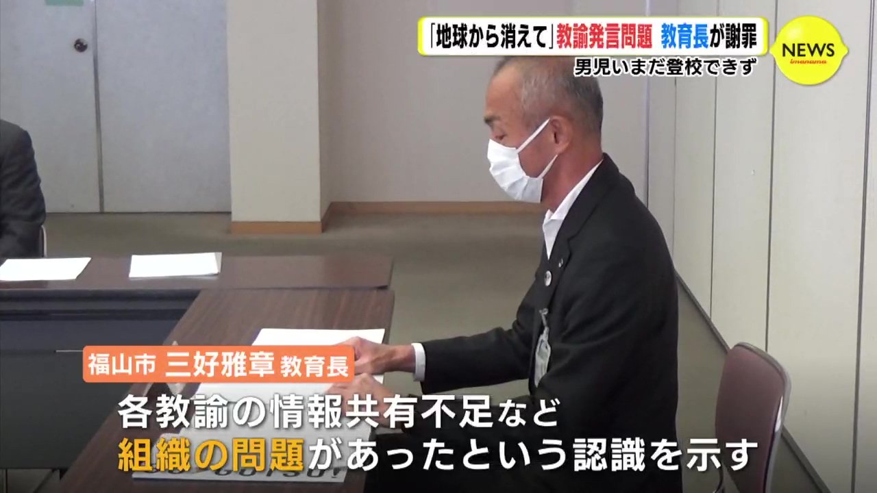 福山市教育委員会会議で、ことし4月以降、市内の小学校で6年生の担任を務める女性教諭が、男子児童1人に対し、不適切な発言や指導をしていたことについて経過が報告され、教育長が謝罪しました。