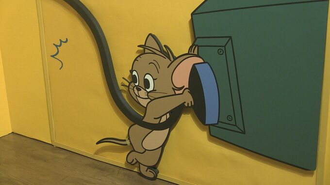 きょうは企画展開催に先立ち会場が報道公開されました。魅力的なキャラクターの紹介や85年の歴史を知ることができる展示があるほか、フォトスポットで「映える」写真が撮影できるコーナーなどトムとジェリーの世界に入り込んだような催しになっています。