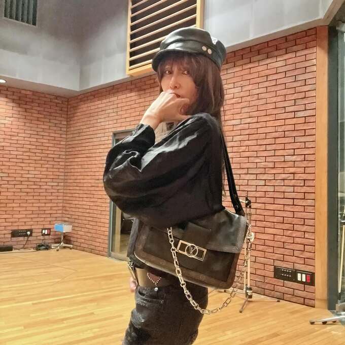 投稿された画像では、黒のキャップと同色のトップスを身につけたブラックコーデ、肩に黒い「ルイ・ヴィトン」のバッグを掛けた姿が見て取れます。