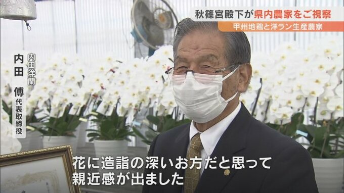 秋篠宮さまが来県され、甲州地どりの生産に取り組む甲府市の農家などを視察されました。