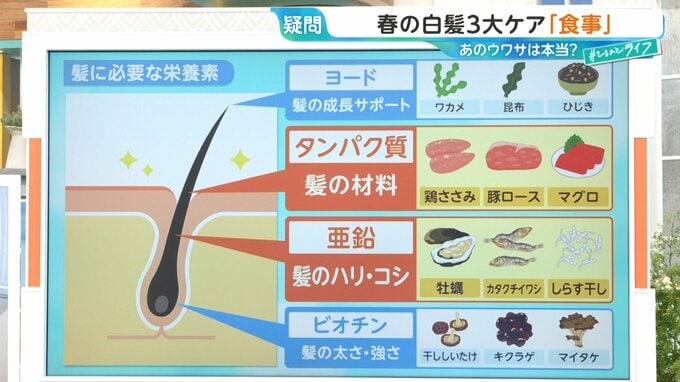 当然、髪の毛に大事なミネラルが多いという意味で栄養豊富ではあるんですが、単品ダイエットが成功しないのと同じで、これだけを食べて黒くなるというものではありません。