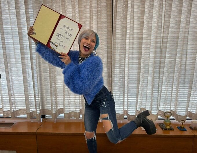 信子さんは「さすがに盛れた」と一言だけテキスト。マネージャーさんが撮影したワンショットをリポストした写真では、トレードマークの “分け目で青と銀” のインパクトあるショートヘアが消えてなくなり、代わりに胸まで届くストレートのロングヘアに変身。