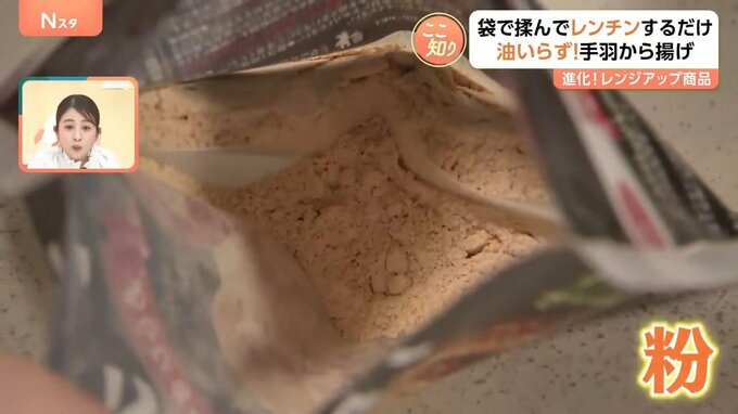 袋を開くと衣となる粉が入っていて、油は入っていませんが、味つけも調理も全てこの袋の中でできます。