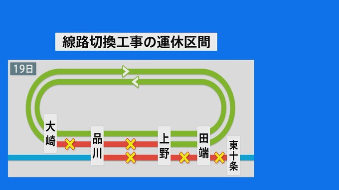 「羽田空港アクセス線」の整備に伴う工事のため、山手線と京浜東北線はきょうとあす、一部区間で運休となり、2日間でおよそ54万6000人への影響が見込まれています。この週末、山手線と京浜東北線の一部区間が運休…