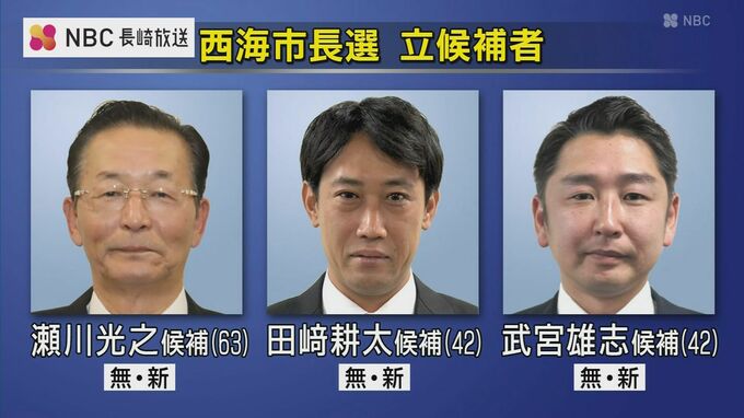 西海市長選挙に立候補しているのは届け出順に、いずれも無所属で新人の