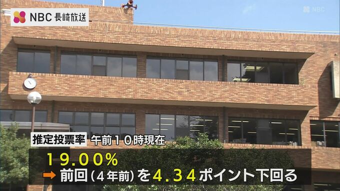 午前10時現在の推定投票率は19.00%で、4年前の前回を4.34ポイント下回っています。