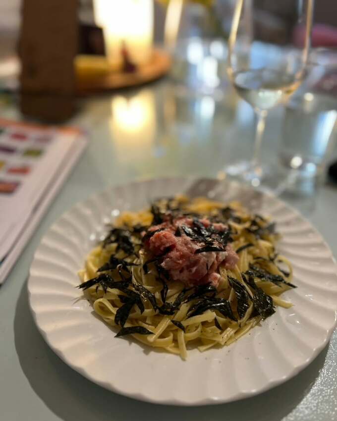 真矢さんは「流石に和食が恋しくなってきました」と書き出し「せめてと昨日、今日とかき揚げうどんからのたらこパスタと作ってみました」と2枚の料理の写真を投稿しました。
