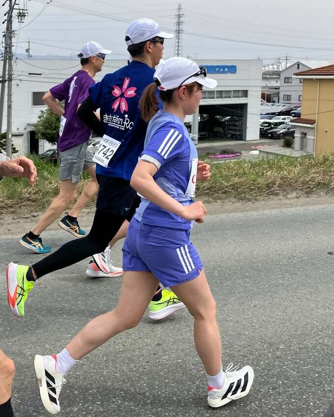 井上咲楽さんは「今回は一度急激にスピードが落ちてしまい、ちぇ。と不貞腐れた気持ちにもなりました。でも冷静になって、速くなくてもいいから走ってみようと目標を目の前に設定したことでゴールできました。振り返ってみると総じて楽しいレースでした!」と、投稿。